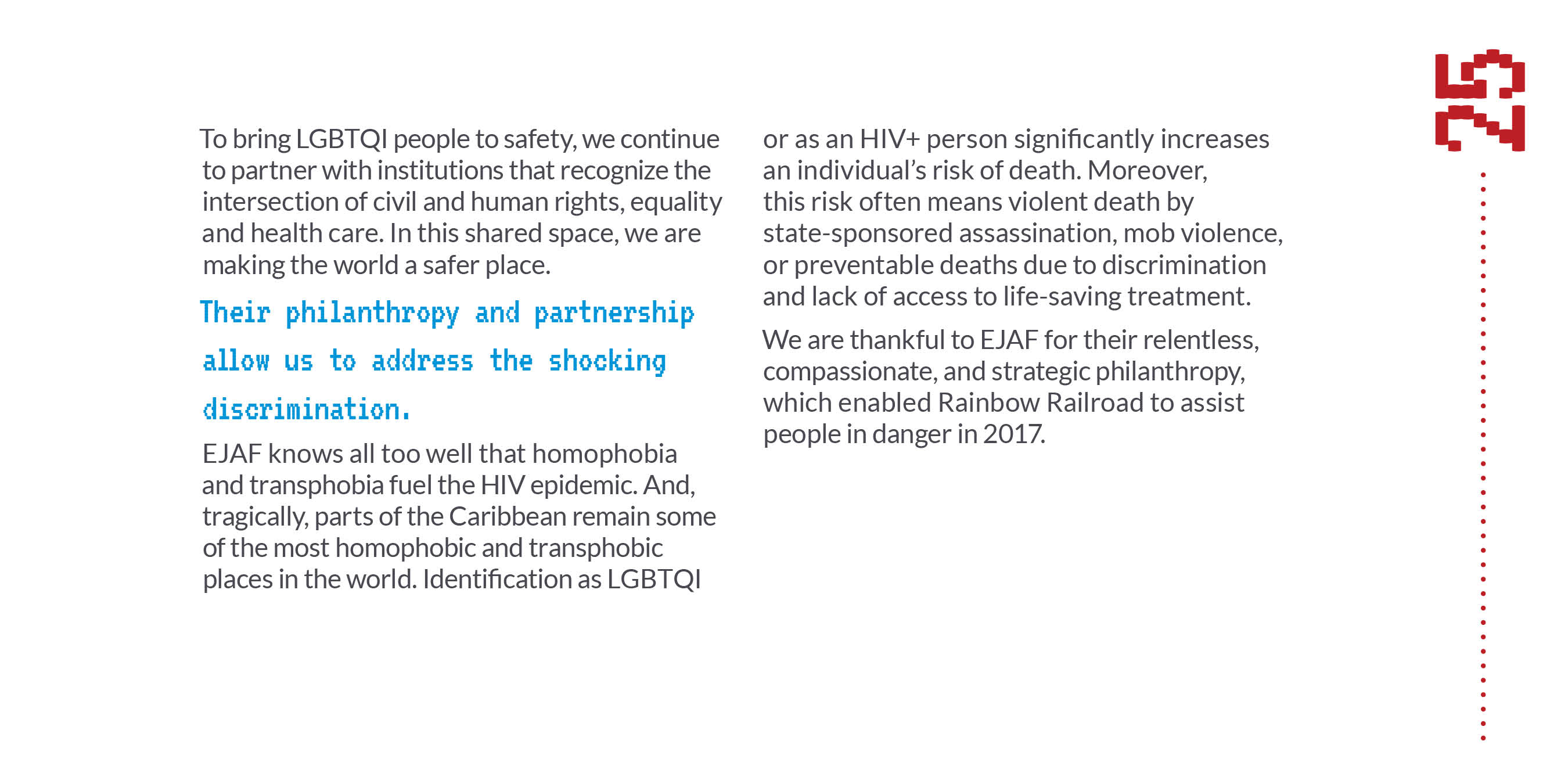 In countries around the world, LGBTQI+ people face violence and oppression simply because of who they love or who they are. We help them get to safety.